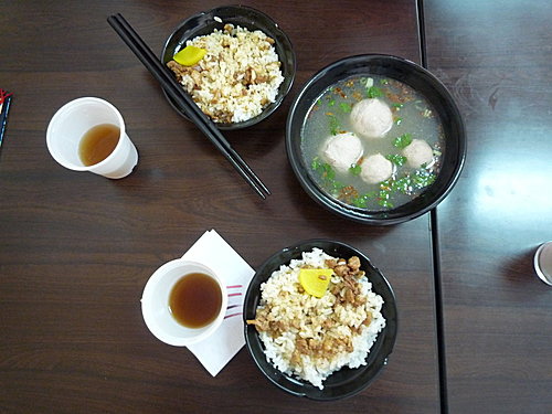 我們點了2碗魯肉飯($20+$20)+一碗貢丸湯($35),還有免費的酸梅湯,